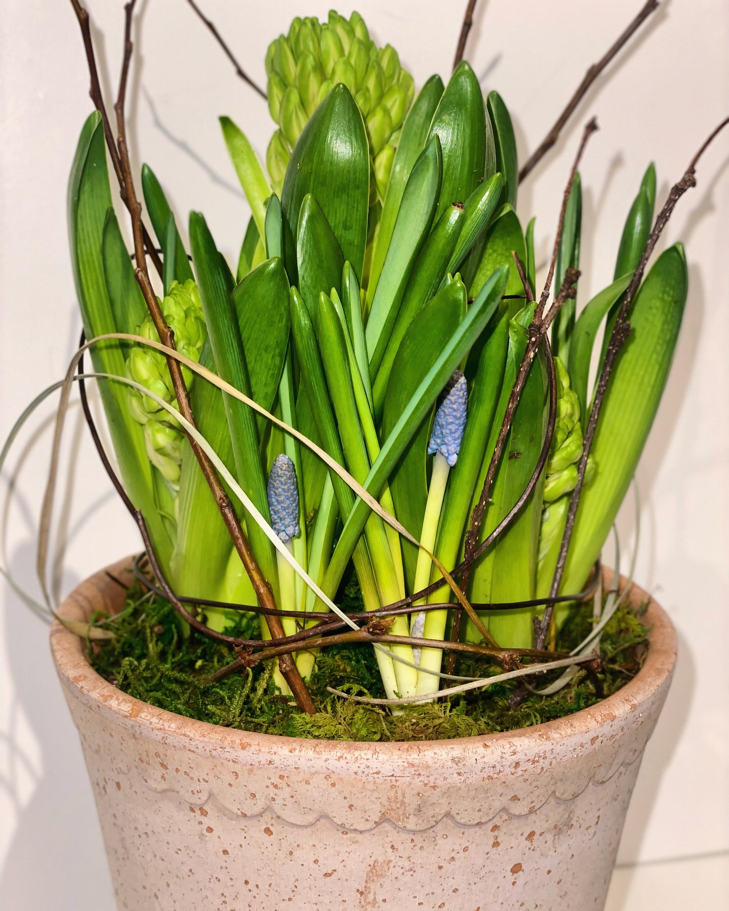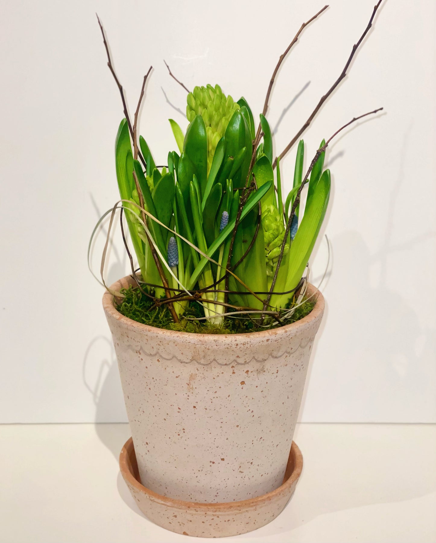Regular price $65.00An Angel 101 Valentine's Day Special. Enjoy this beautiful Mini Bulb Garden filled with Hyacinth and Muscari plants that are growing into bloom. This potted in our beloved Bergs Potter Helena Pot. Made in Denmark, Bergs Potter is a world renown company that crafts authentic Italian clay pots.