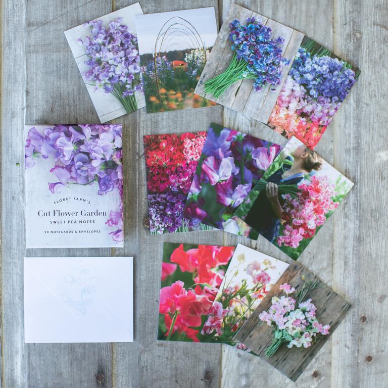 The lush beauty of Floret is captured in these beautiful cards featuring photographs of feminine and ethereal sweet peas. A lovely greeting for birthdays[Comma] a thank you[Comma] or a cheerful hello to a friend[Comma] these garden-fresh cards are sure to brighten any recipient's day.Product Details:20 notecards with envelopes2 sets of 10 images