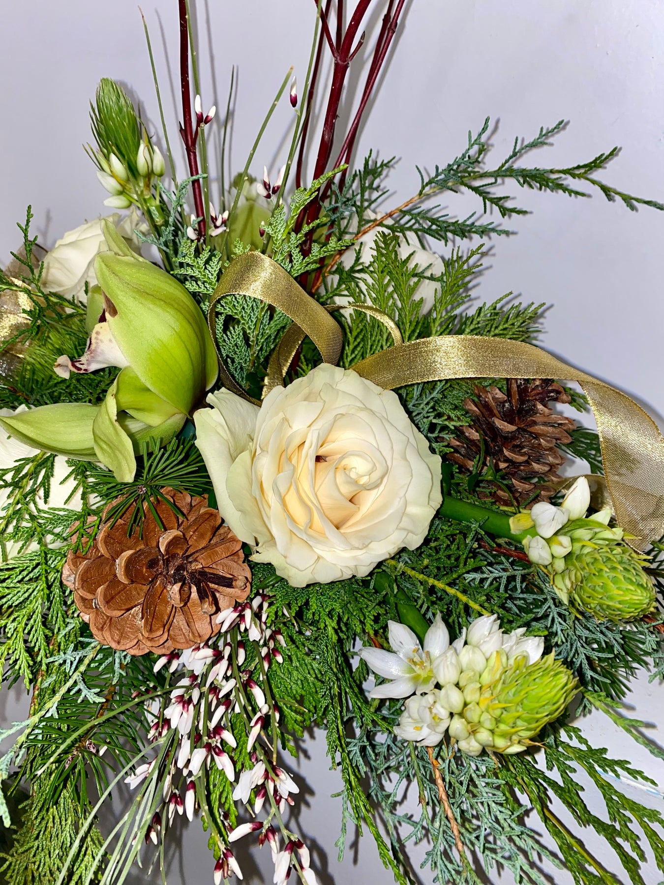 Let the Angel 101 designers craft a gorgeous centerpiece for your holiday table! This fresh centerpiece will be composed of seasonal florals and complimenting foliage...All ready to display on your table!