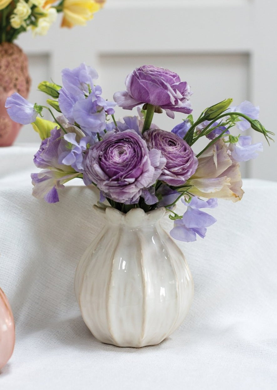 A sweet addition to our vase collection. The ceramic Rosemead Vase features a petal-inspired design and a white reactive glaze finish. This vase goes perfectly with any color of florals.