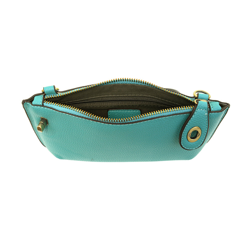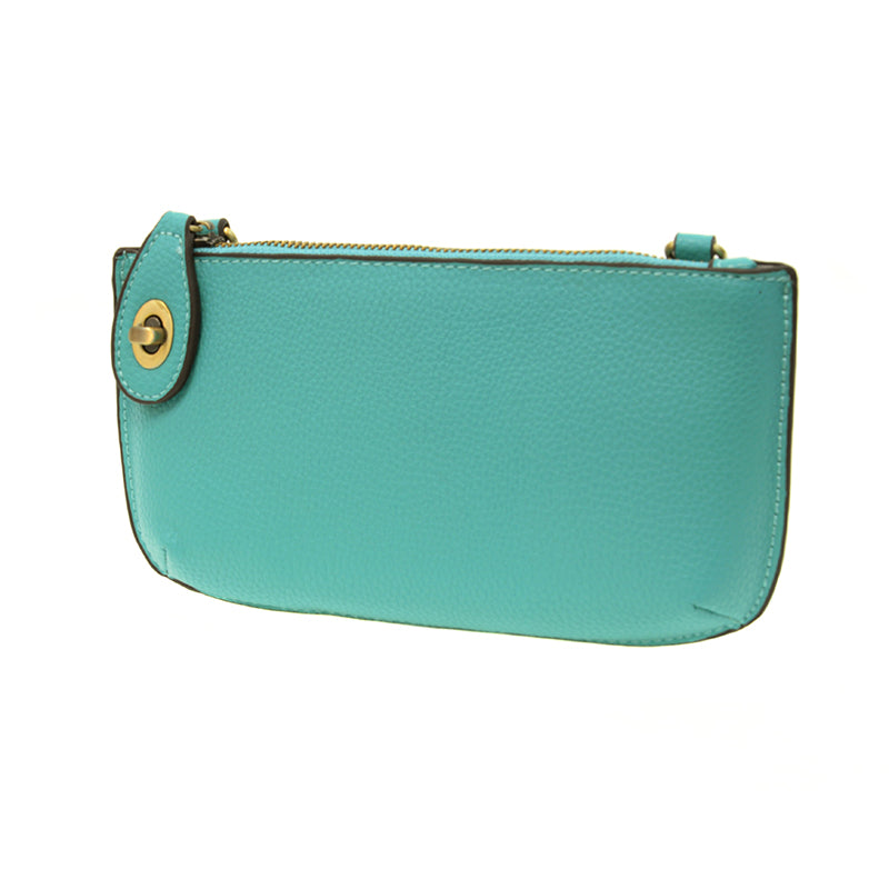 Joy Susan's most popular bag! This mini clutch in its fresh colors and sleek silhouette is as gorgeous as it is versatile. Features include a polished turn lock, six card slots and interior zipper for change. Can be styled in many ways, with removable straps for alternating between wallet, cross body and wristlet.