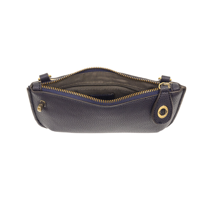 Joy Susan's most popular bag! This mini clutch in its fresh colors and sleek silhouette is as gorgeous as it is versatile. Features include a polished turn lock, six card slots and interior zipper for change. Can be styled in many ways, with removable straps for alternating between wallet, cross body and wristlet.