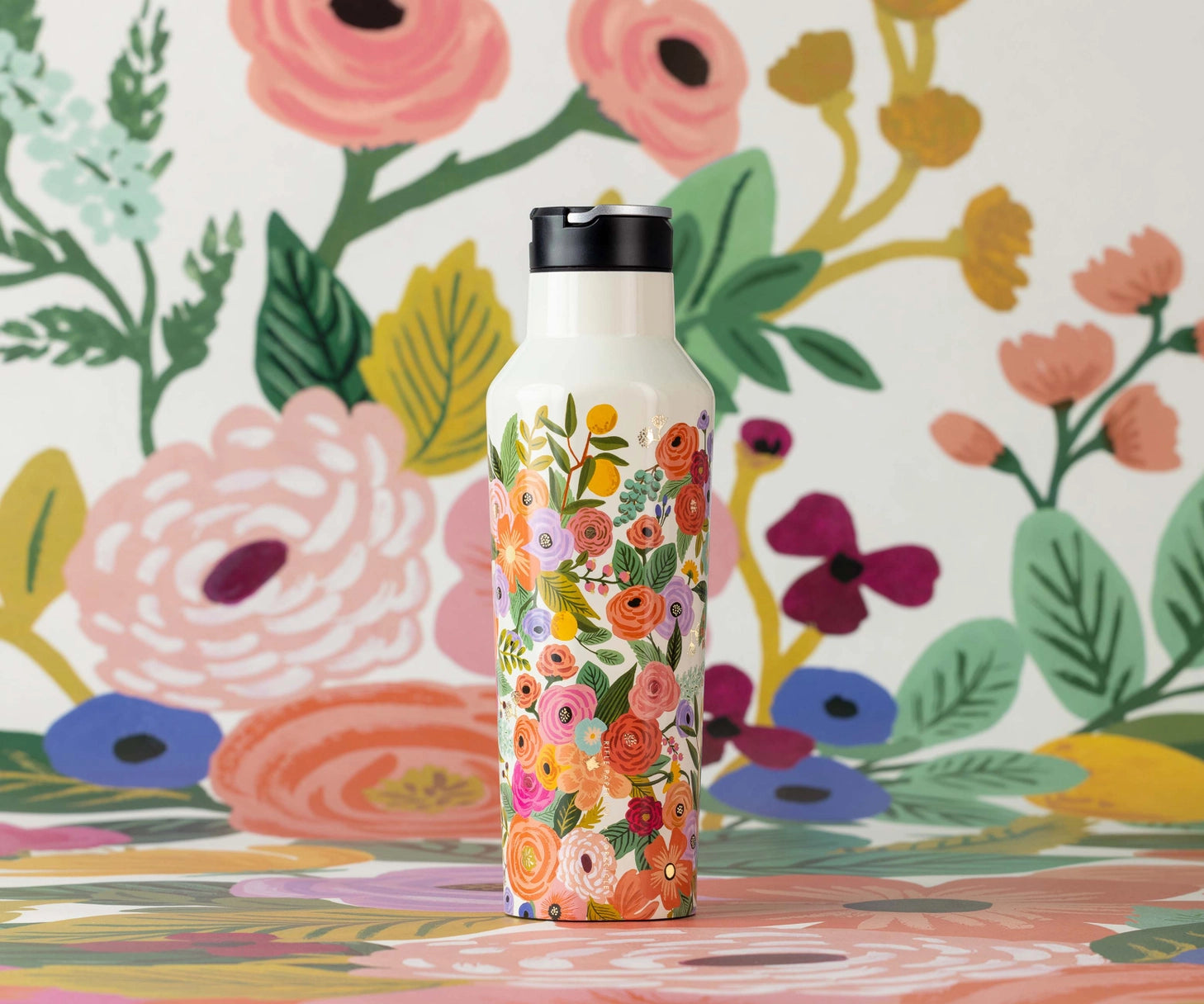 Our collection with Corkcicle pairs our signature prints with their innovative, triple-insulated drinkware—so you can enjoy your favorite hot or cold beverage at home or on the go. This 20-ounce canteen has a wide mouth for ice cubes, a cap with built in straw, and it keeps drinks chilled for up to 25 hours or warm for up to 12 hours.